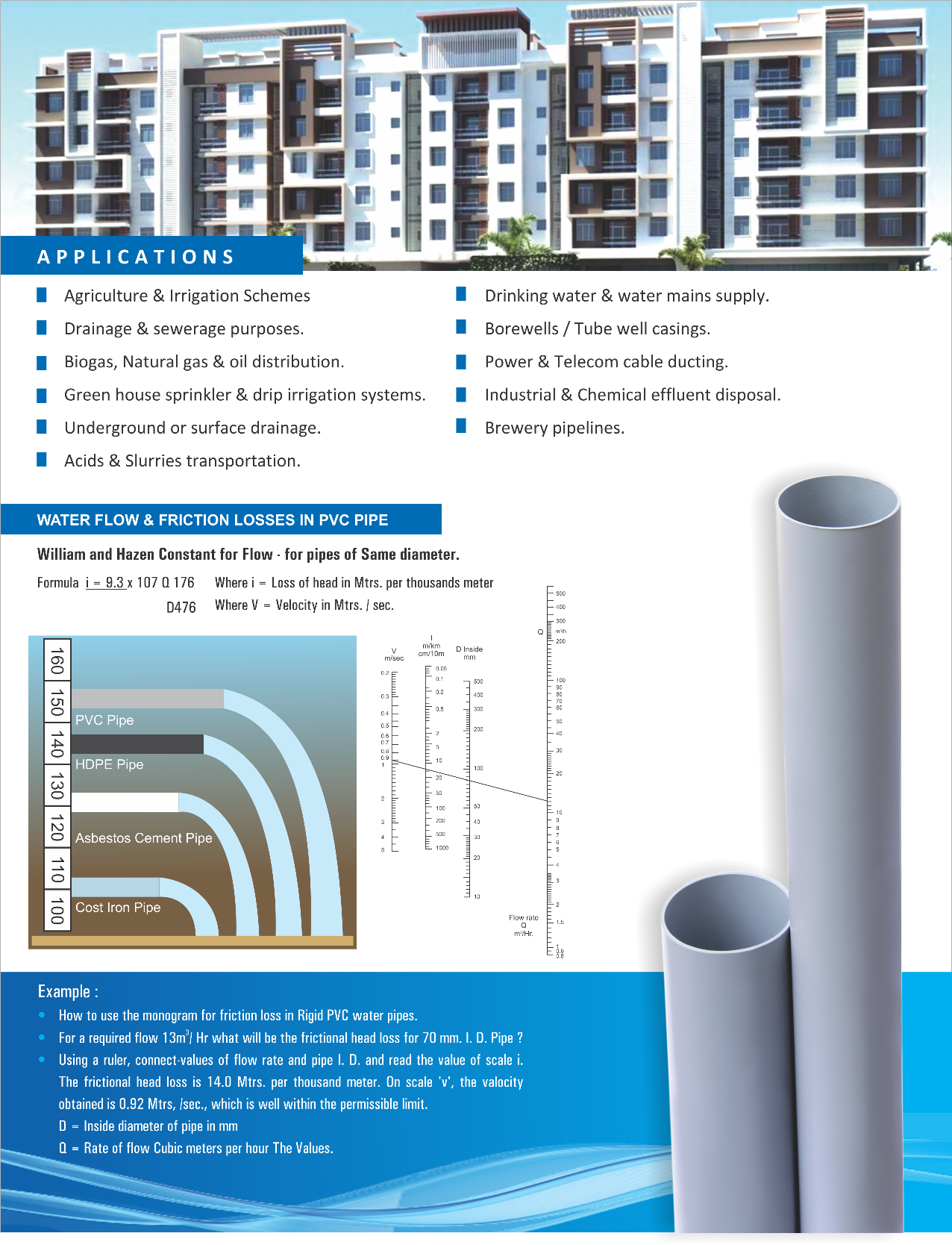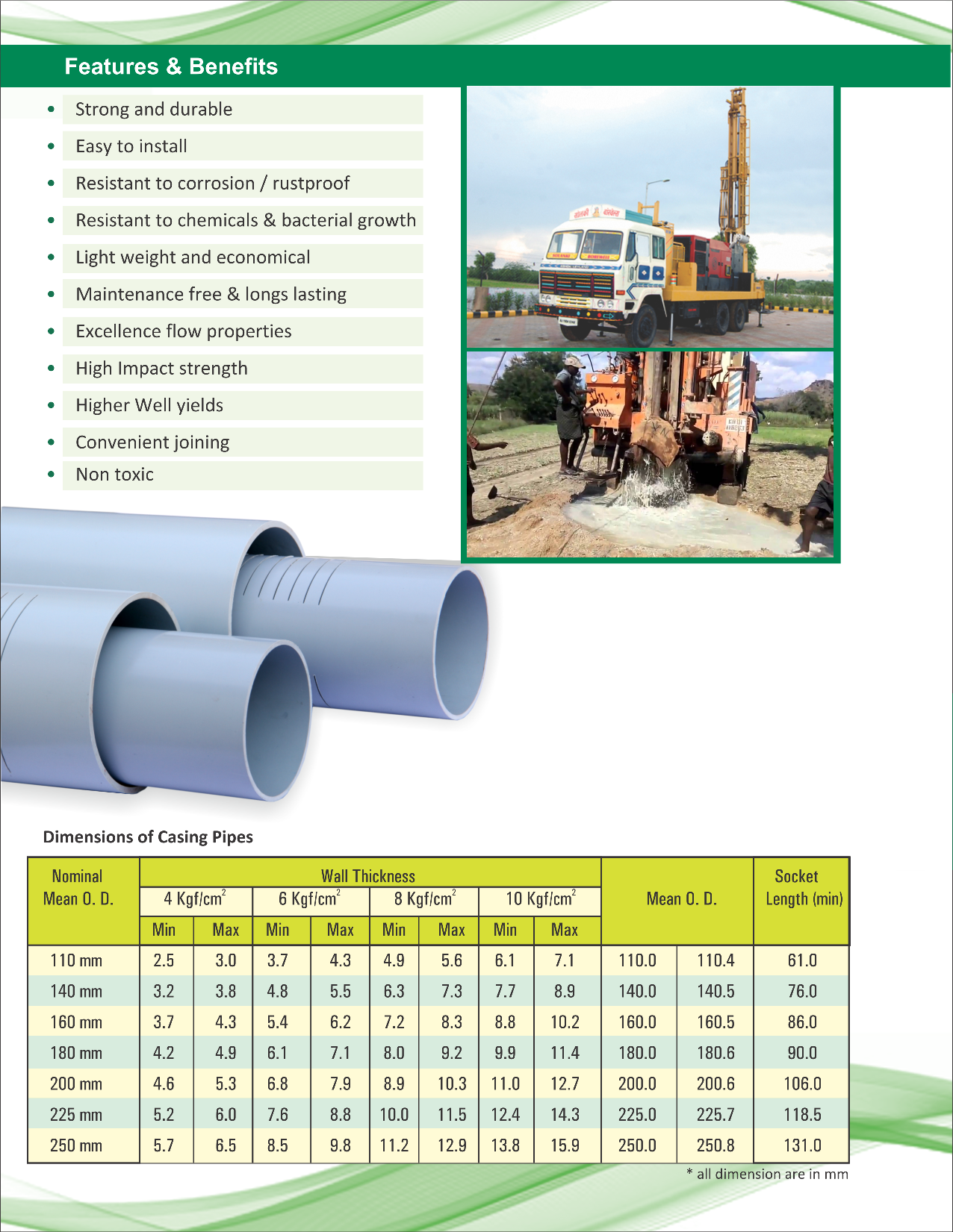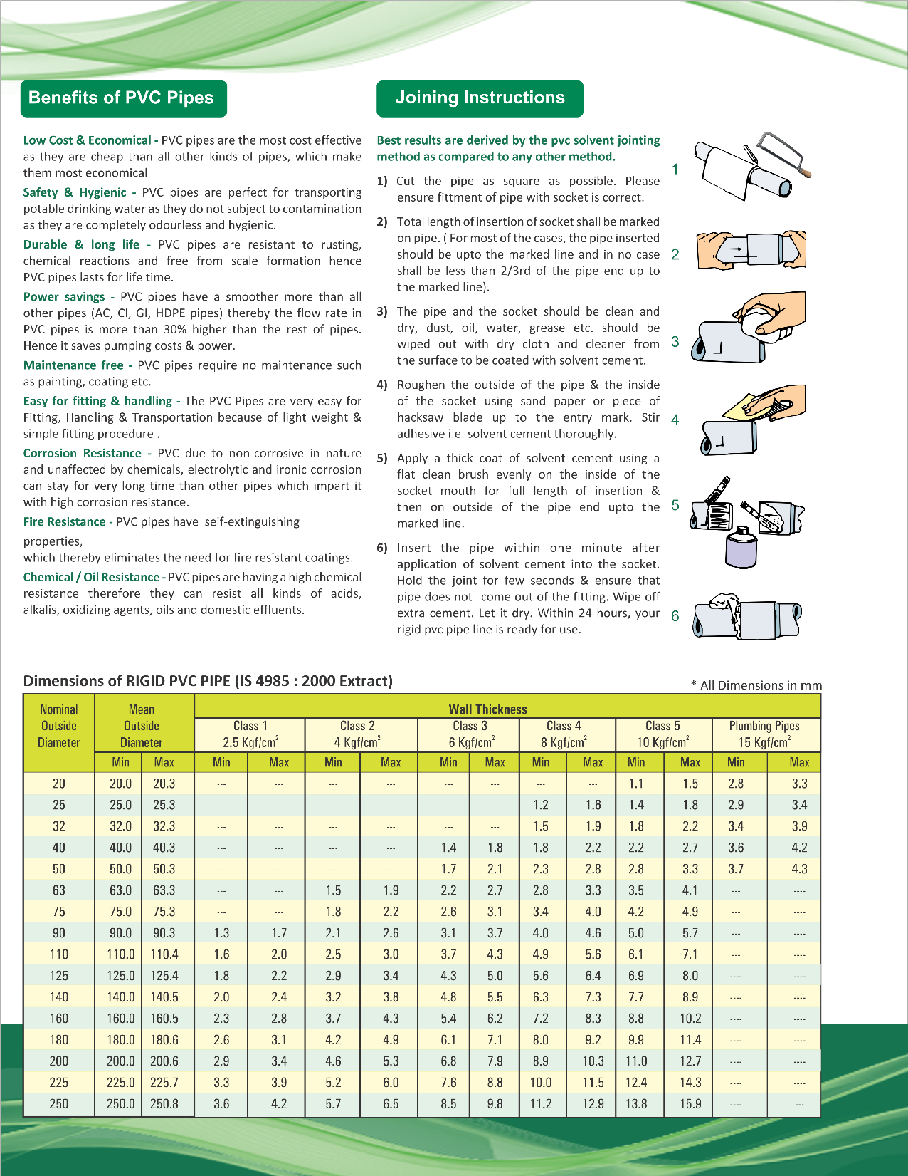 The company has been devoted to the quality of its products. Its comperehensive quality program has always been based on continuous improvement in products, process & Systems. The extrusion of pipes is done with latest technology. We have dedicated ourselves to the needs of frarmers, water transportation, drainage, borewells, teleom cable ductings, plumbing systems etc. For these purpose we are manufacturing wide range of PVC pipe from 20mm to 250mm O.D. The Company always believes in Quality