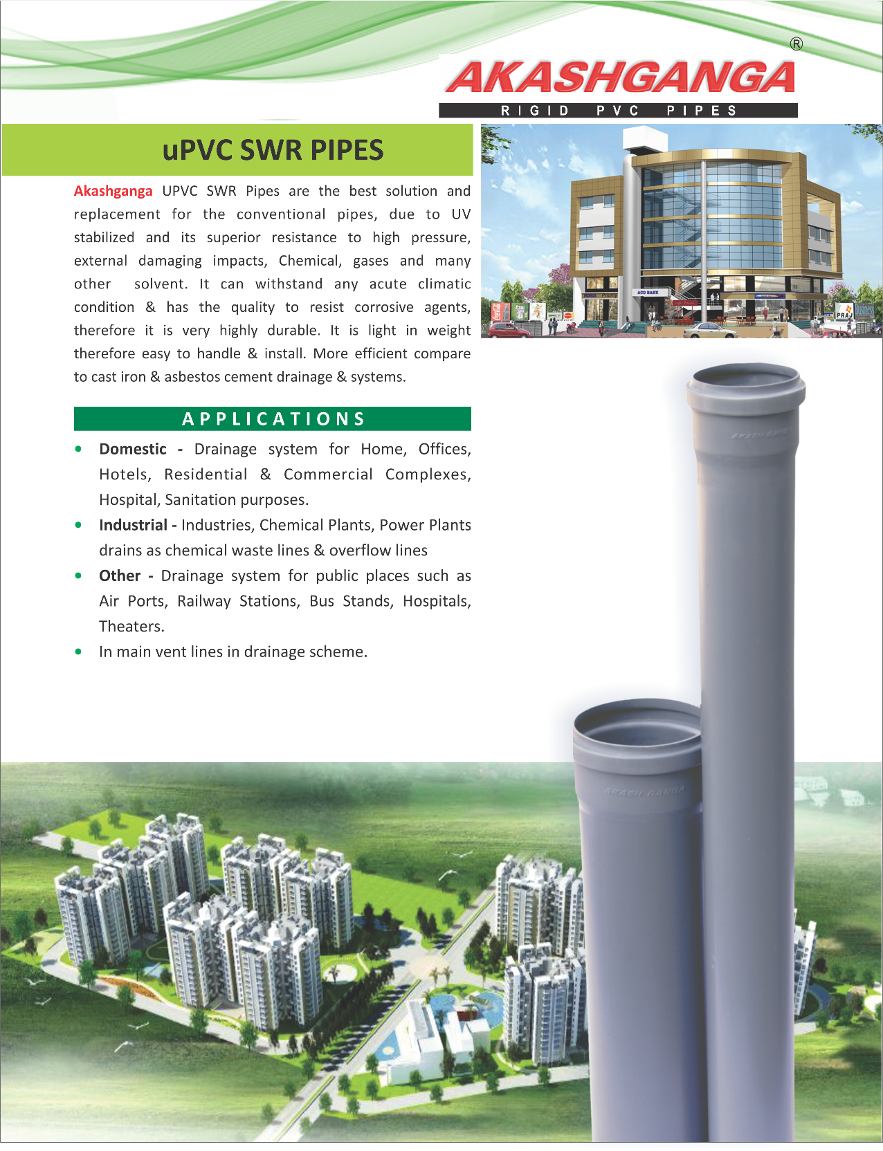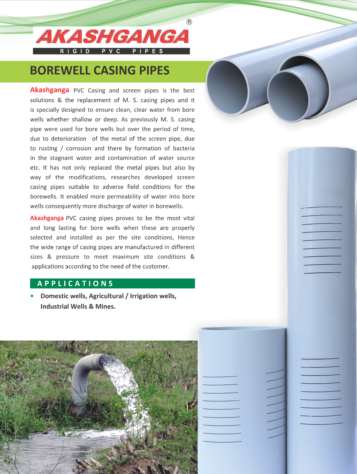 SWASTIK PIPE INDUSTRIES is one of the Leading manufacturer for rigid PVC pipe & fittings. The Company established in 1989 by the people who had Twenty years experience to their credit in selling of Electric conduit PVC pipes & Agriculture PVC pipes and also manufacturing of Electric Conduit PVC pipes & Plumbing pipes. Hence they know the minutest details of all types of PVC pipes & Materials. This company has come along all the way from manufacturing merely pipes to a complete the range of PVC Products