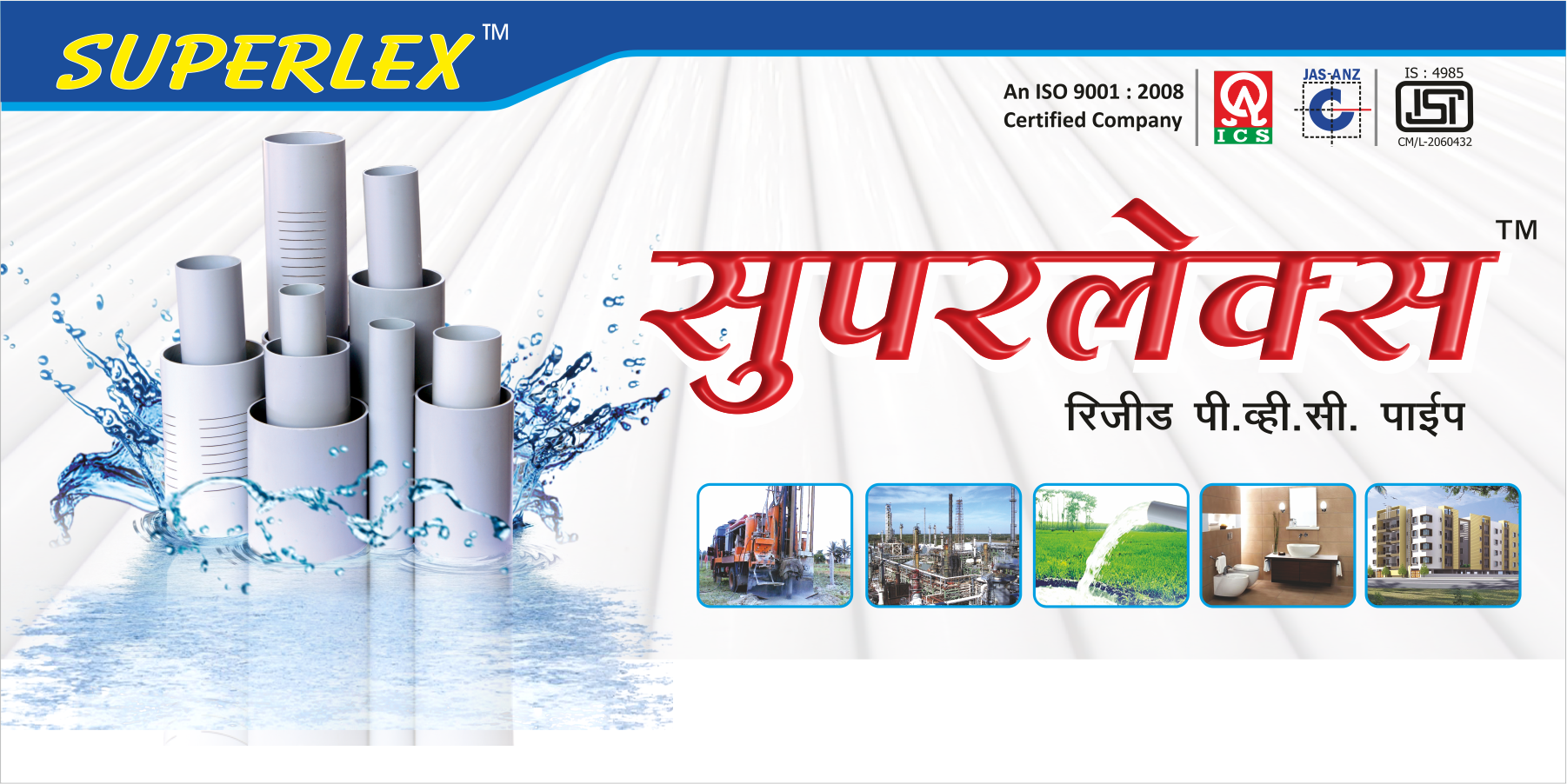 The company won its customers continued trust by always providing the Quality Products. The company has certified by an ISO 9001:2008. The Bureau of Indian Standard Certified the company & provided Licence to mark ISI mark on the pipes. The company have full fledged independent well equipped Quality Control Laboratory for checking Quality & Testing of pipes as per standard IS 4985:2000. The company has also received the owner of several awards for its outstanding performance.
